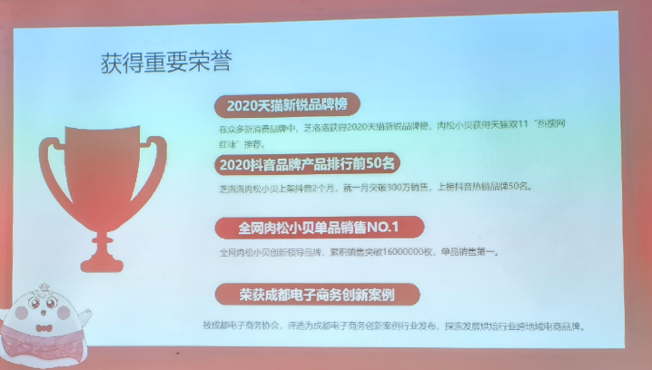 2020:招牌肉松小貝獲得天貓同品類年銷售量NO.1年銷售額從200百萬增長到5000萬年度